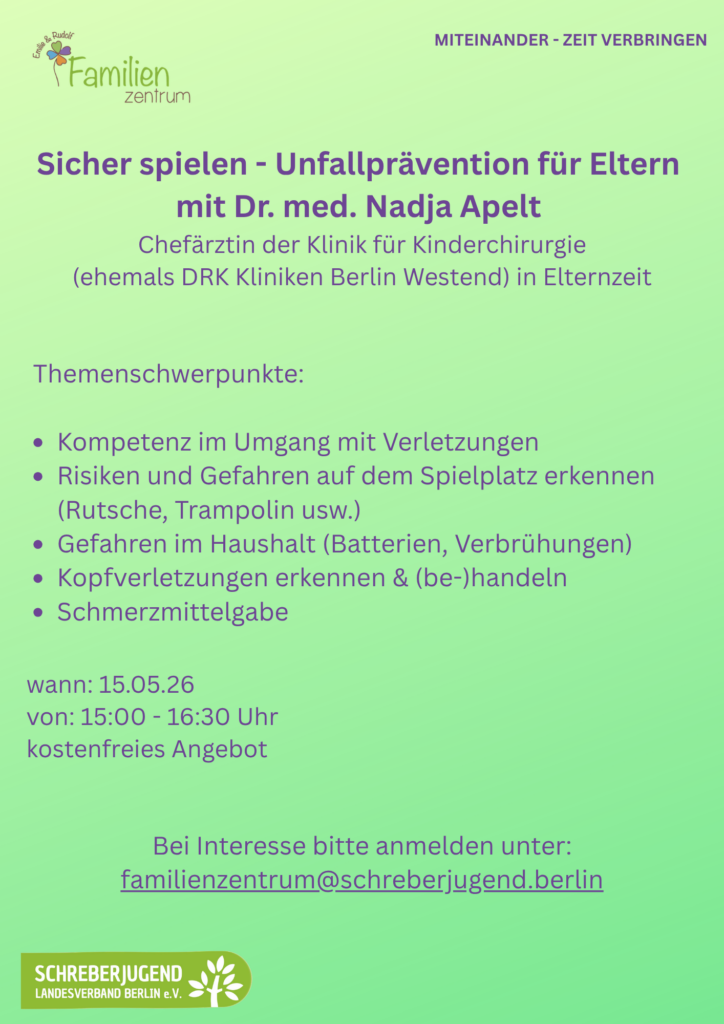 Beratung & Begleitung vom Gesundheitsamt : Jeden Donnerstag zwischen 10:30 – 12:30 Uhr begrüßen wir eine Fachkraft aus dem Gesundheitsamt bei uns im Familienzentrum. Im Wechsel kommen die Familienhebammen, eine Kinderkrankenschwester und Stillberaterin, eine Mitarbeiterin des Regionalen Sozialen Dienstes (RSD) oder eine Fachkraft aus der FgKiKP.Sie unterstützen euch zu Themen wie Schwangerschaft, Stillen, Gesundheit und Entwicklung eurer Kinder, familiären Herausforderungen, Frühen Hilfen und sozialrechtlichen Fragen.